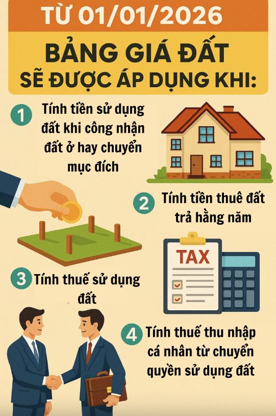 11 trường hợp áp dụng bảng giá đất từ 01/01/2026