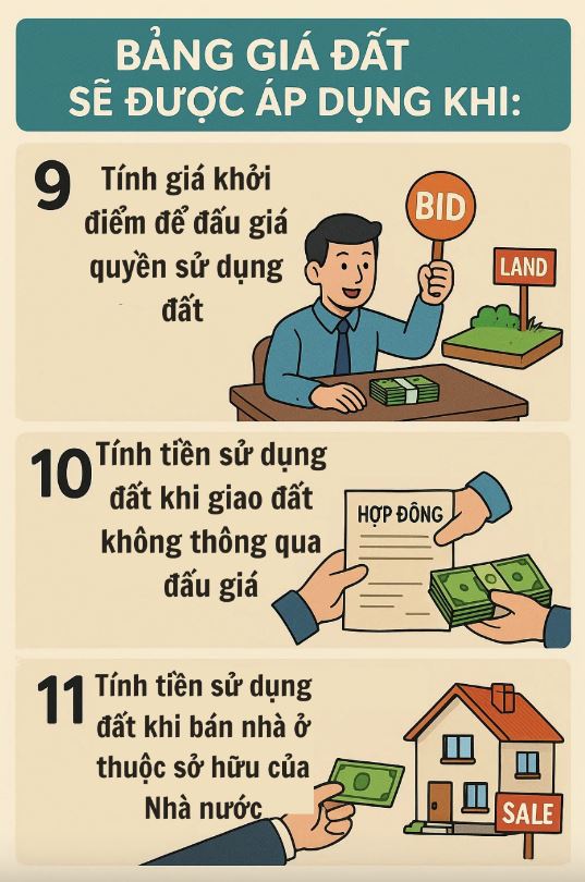 Theo khoản 1 Điều 159 Luật Đất đai 2024, từ 01/01/2026, bảng giá đất sẽ được áp dụng khi:
