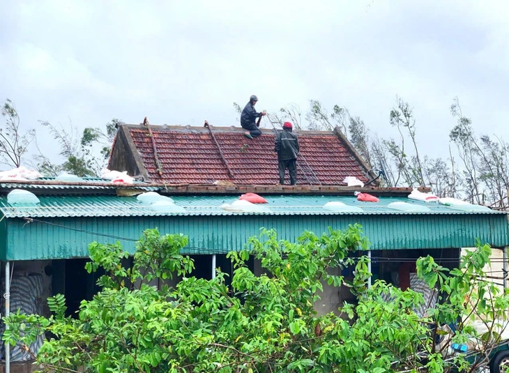Người dân Hà Tĩnh chủ động chằng chống nhà cửa để ứng phó với bão Bualoi – Ảnh: LÊ MINH